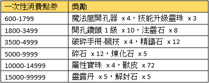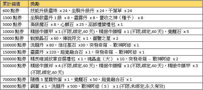 活動描述:瘋狂連續儲值拿大獎!!獎勵價值大於15萬!!
