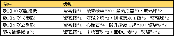 活動描述:活動期間,參加各種競技戰,只要你夠努力和強悍,任務獎勵隨你拿去。