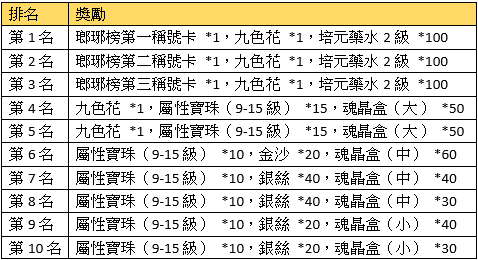 活動描述:活動結束時,彈友們只要在遊戲中累計儲值達到前十名就可以獲得額外獎勵喔。