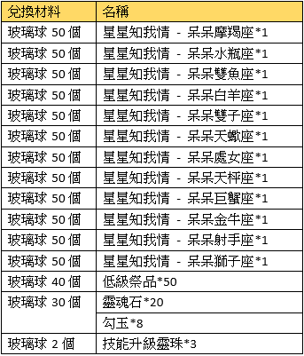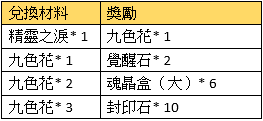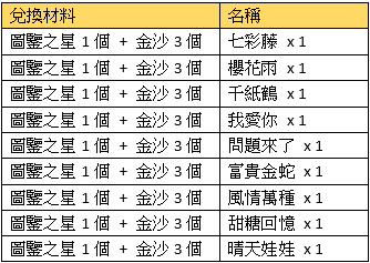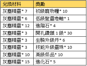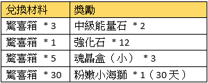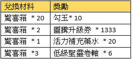 活動規則:活動期間,可使用指定物品兌換獎勵