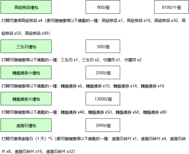 4、活動獎勵物品,每項僅可領取一次,若無特殊註明均為綁定物品;