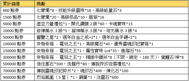 活動描述:瘋狂連續儲值拿大獎!!獎勵價值大於15萬!!