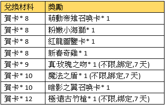 注意事項:1、活動獎勵物品若無特殊注明均為綁定物品;