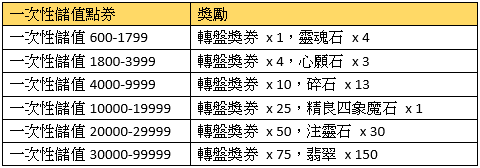 注意事項:1、一次性儲值可以重複領取;若欲領取特定階段的一次性儲值獎勵,請保持在線儲值;離線儲值將導致儲值金額於下次上線時合併計算