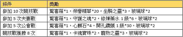 活動描述:活動期間,參加各種競技戰,只要你夠努力和強悍,任務獎勵隨你拿去。