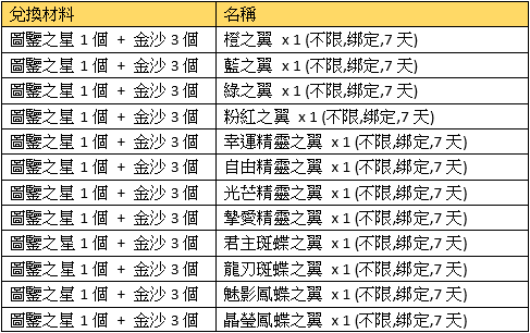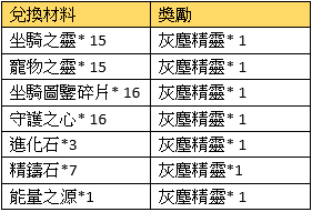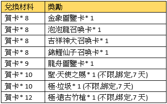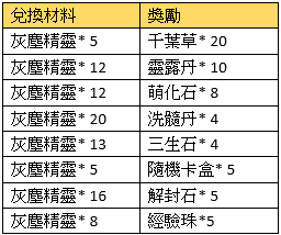 活動規則:活動期間,可使用指定物品兌換獎勵