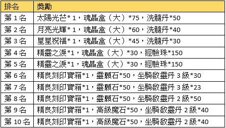 5、本次活動獲得前三名的玩家,可選擇將獎勵替換為 精靈之淚:太陽光芒 可兌換 精靈之淚*2;月亮光輝/星星祝福 可兌換 精靈之淚*1。