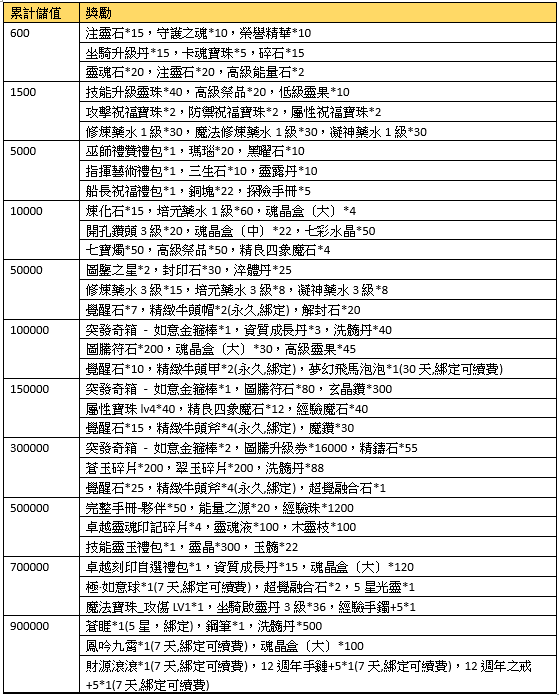 4、活動獎勵物品,每項僅可領取一次,若無特殊註明均為綁定物品;