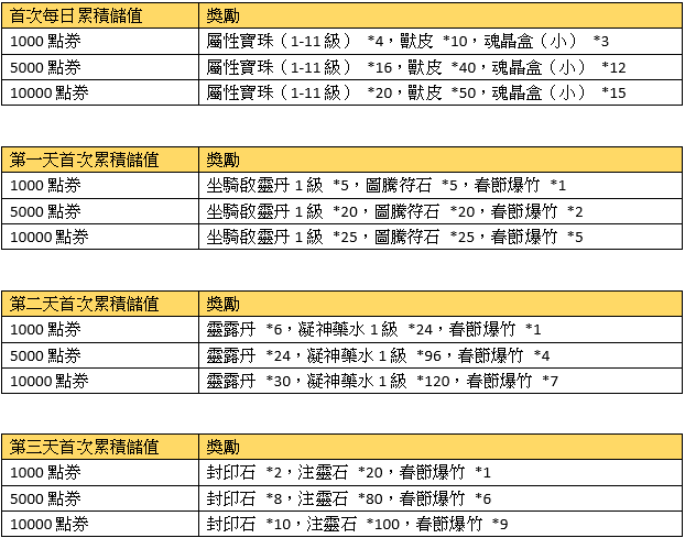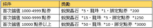 2、首次每日累積儲值獎勵請在儲值當日於專屬活動面版領取,當日未領視同放棄。