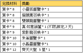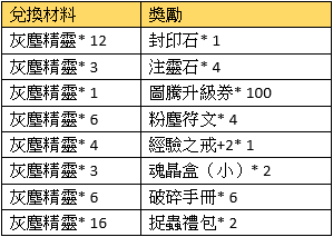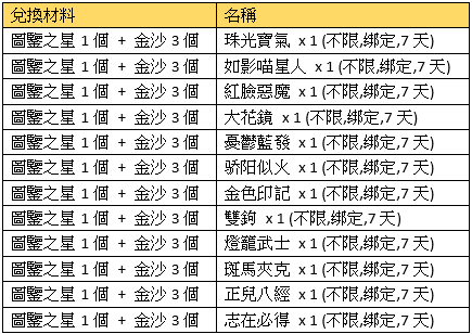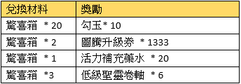 活動規則:活動期間,可使用指定物品兌換獎勵