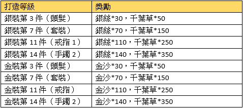 活動描述:活動期間,只要成功打造達指定等級,即可獲得額外獎勵。