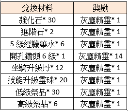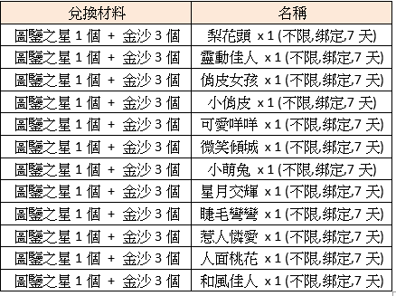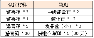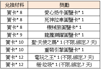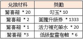 活動規則:活動期間,可使用指定物品兌換獎勵