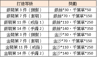 活動描述:活動期間,只要成功打造達指定等級,即可獲得額外獎勵。