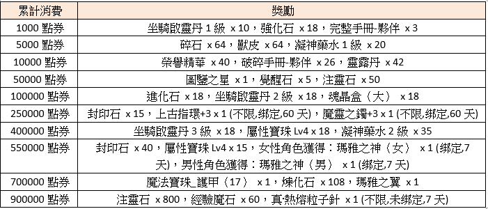 4、活動獎勵物品,每項僅可領取一次,若無特殊註明均為綁定物品;