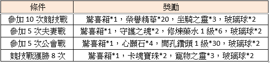 活動描述:活動期間,參加各種競技戰,只要你夠努力和強悍,任務獎勵隨你拿去。