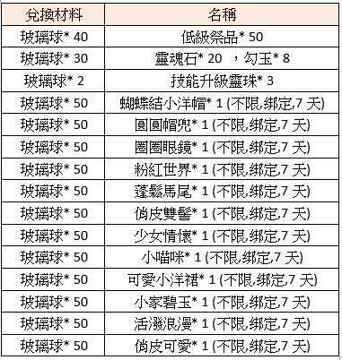 活動描述:活動期間,彈友們可以用變身獲得的玻璃球兌換超萌套裝喔~玻璃球不夠的彈友們,可在彈彈搶購購買,100點券/個