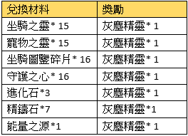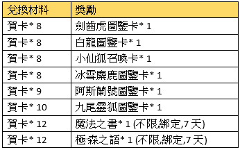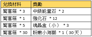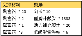 活動規則:活動期間,可使用指定物品兌換獎勵