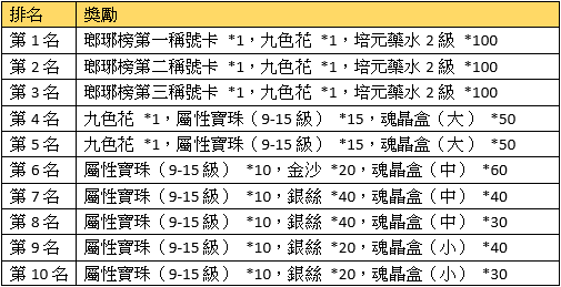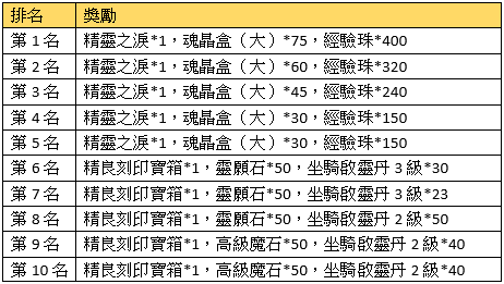 活動描述:活動結束時,彈友們只要在遊戲中累計儲值達到前十名就可以獲得額外獎勵喔。