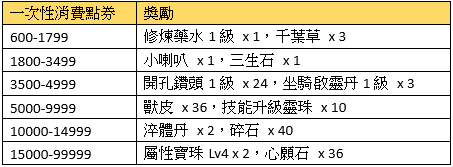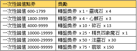注意事項:1、一次性儲值可以重複領取;若欲領取特定階段的一次性儲值獎勵,請保持在線儲值;離線儲值將導致儲值金額於下次上線時合併計算
