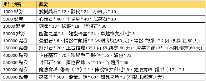 注意事項:1、活動獎勵物品若無特殊注明均為綁定物品;