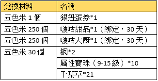 2、該活動限兌換5次,用於兌換的物品在兌換後將會消失;
