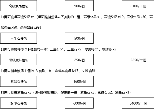 4、活動獎勵物品,每項僅可領取一次,若無特殊註明均為綁定物品;
