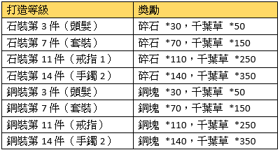 成功鑄金1件衣服的玩家可獲得:進階石*3,碎石*30