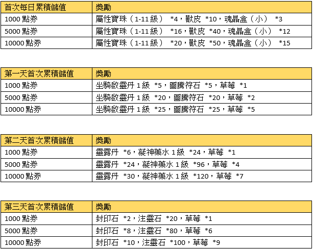 3、累日首次累積儲值獎勵請在活動結束前於專屬活動面版領取,逾期未領者視同放棄。