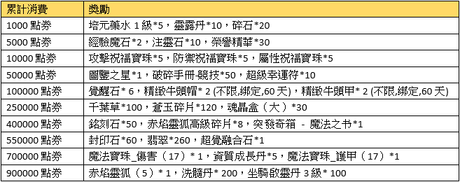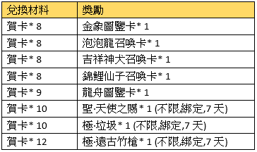 注意事項:兌換的獎勵物品均為綁定;