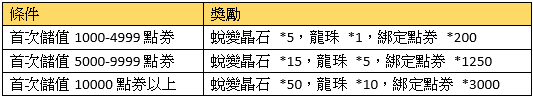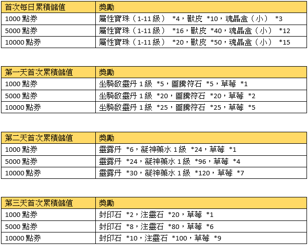 2、首次每日累積儲值獎勵請在儲值當日於專屬活動面版領取,當日未領視同放棄。
