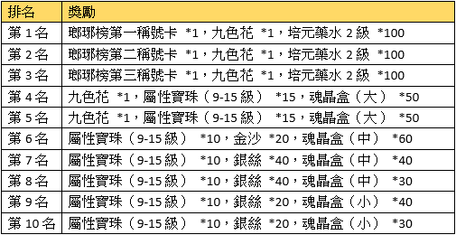 活動描述:活動結束時,彈友們只要在遊戲中累計儲值達到前十名就可以獲得額外獎勵喔。