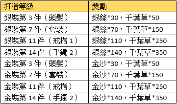 活動描述:活動期間,只要成功打造達指定等級,即可獲得額外獎勵。