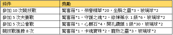 活動描述:活動期間,參加各種競技戰,只要你夠努力和強悍,任務獎勵隨你拿去。