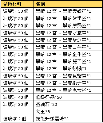 活動名稱:膏雨如酥の玻璃球兌換-黑暗12宮