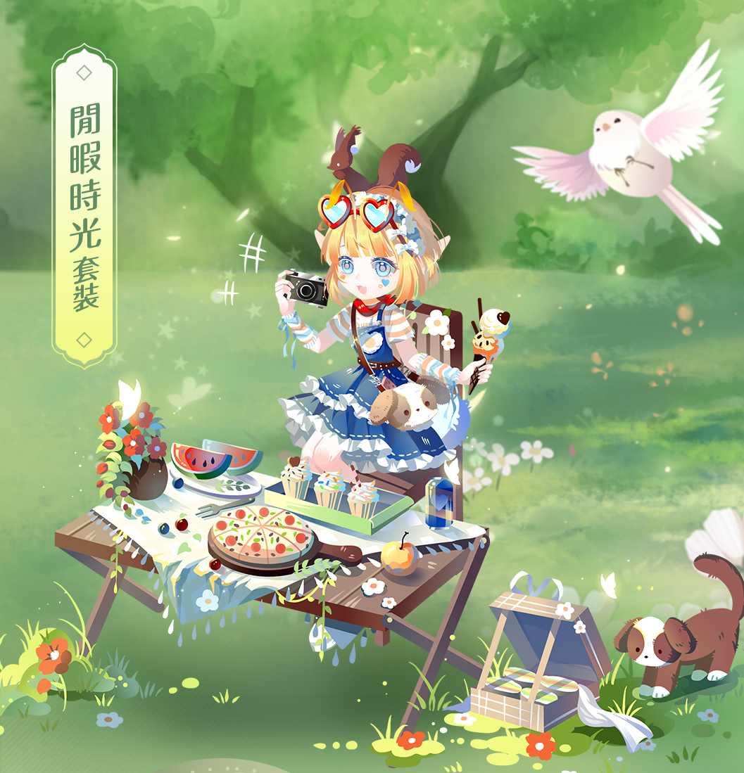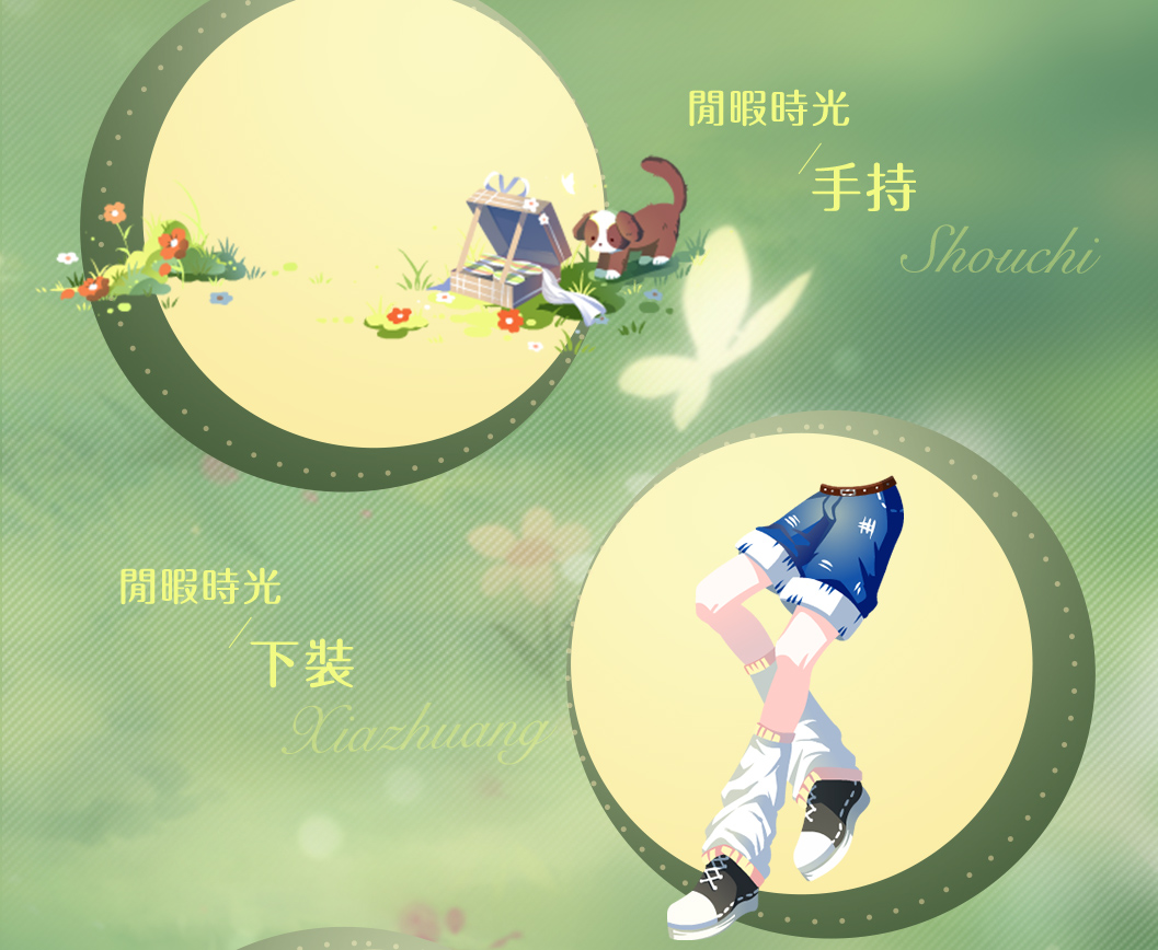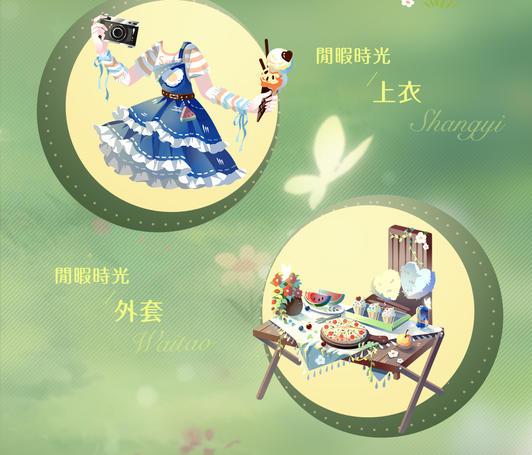 集齊閒暇時光套裝,可獲得對應美瞳及稱號:閒暇時光