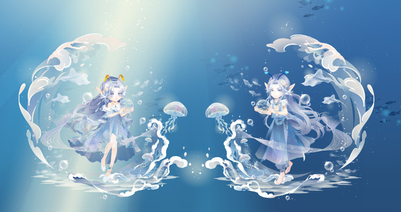 集齊凝望海音套裝,可獲得對應面妝和稱號:凝望海音