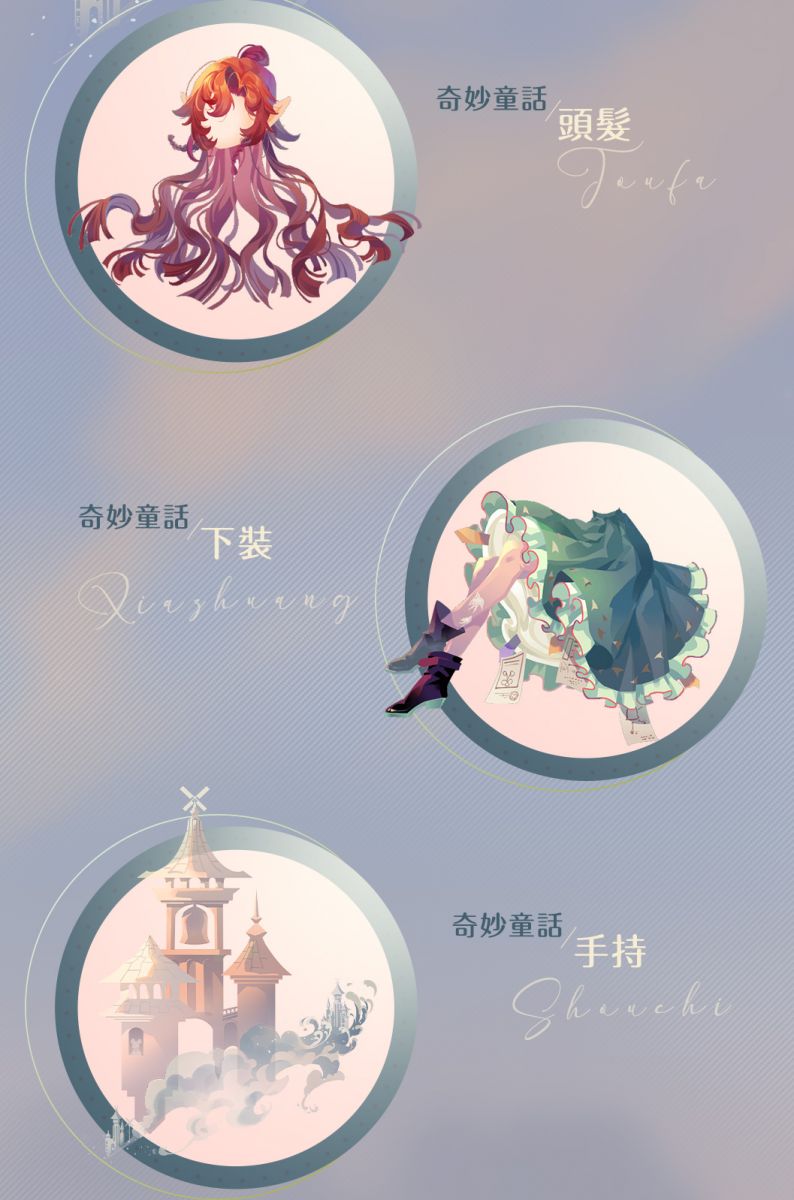 集齊奇妙童話套裝,可獲得對應面妝及稱號:奇妙童話;