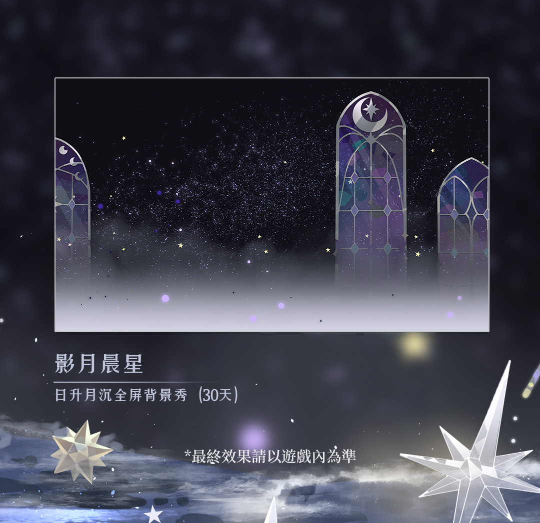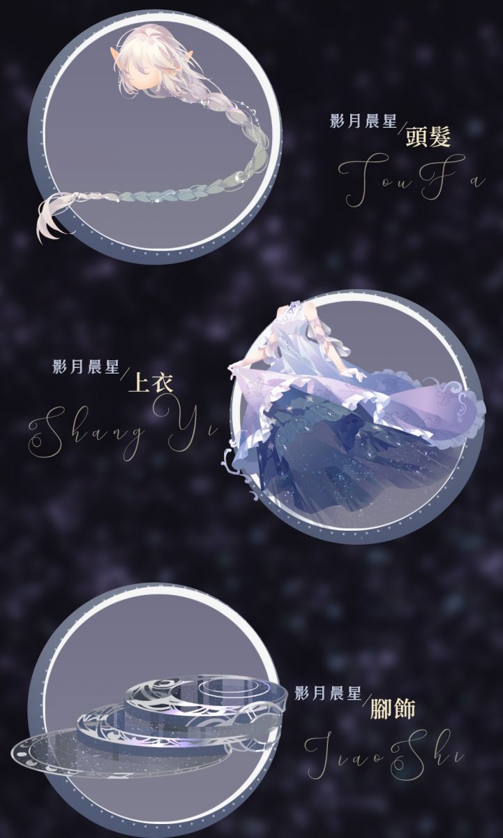 集齊影月晨星套裝,可獲得對應面妝及稱號:影月晨星;