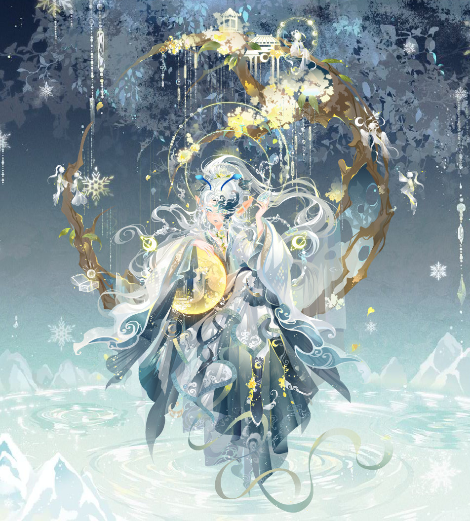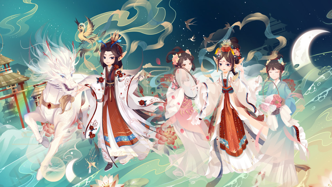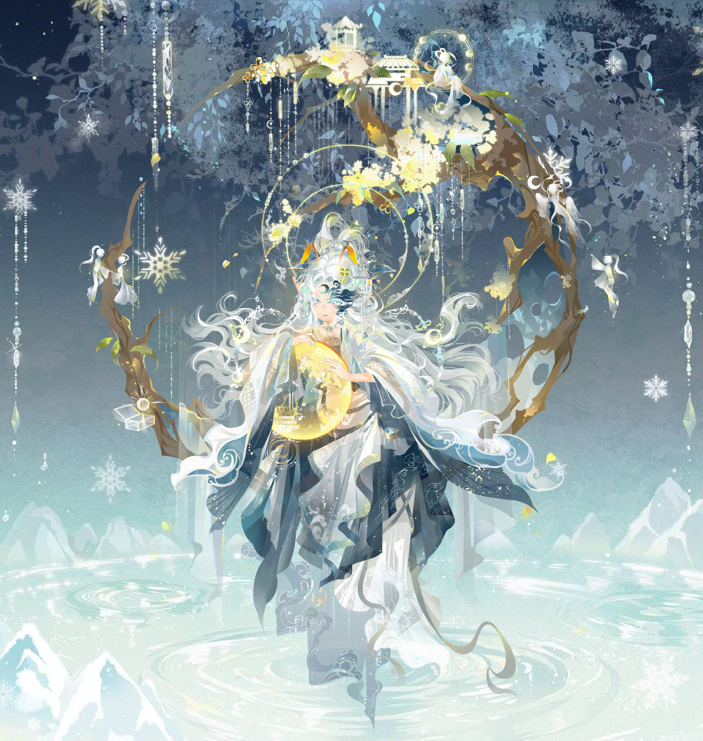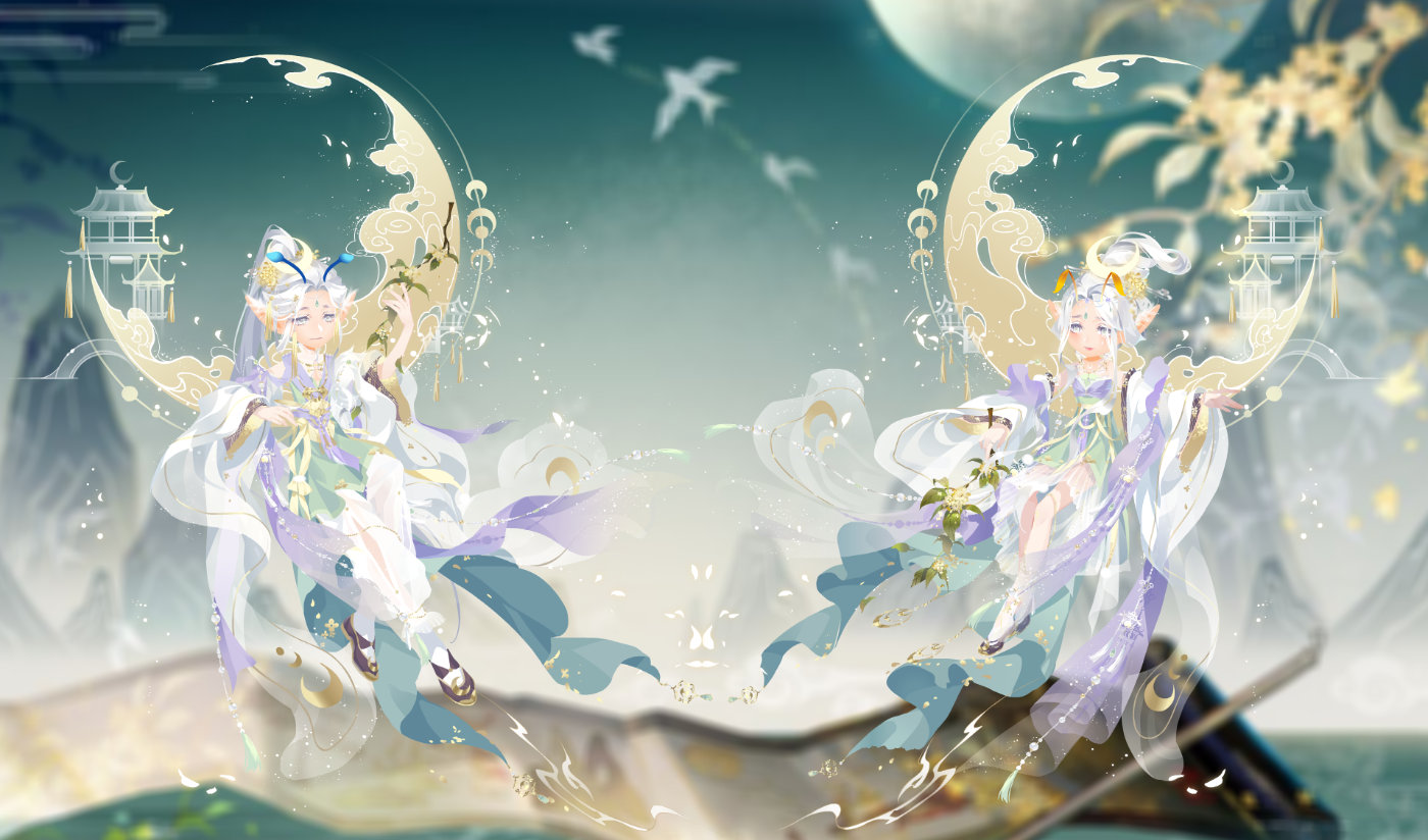 集齊【寒宮嬋娟套裝】和【奔月嬋娟上衣】可領取:廣寒奔月背景秀(30天)、廣寒奔月坐騎