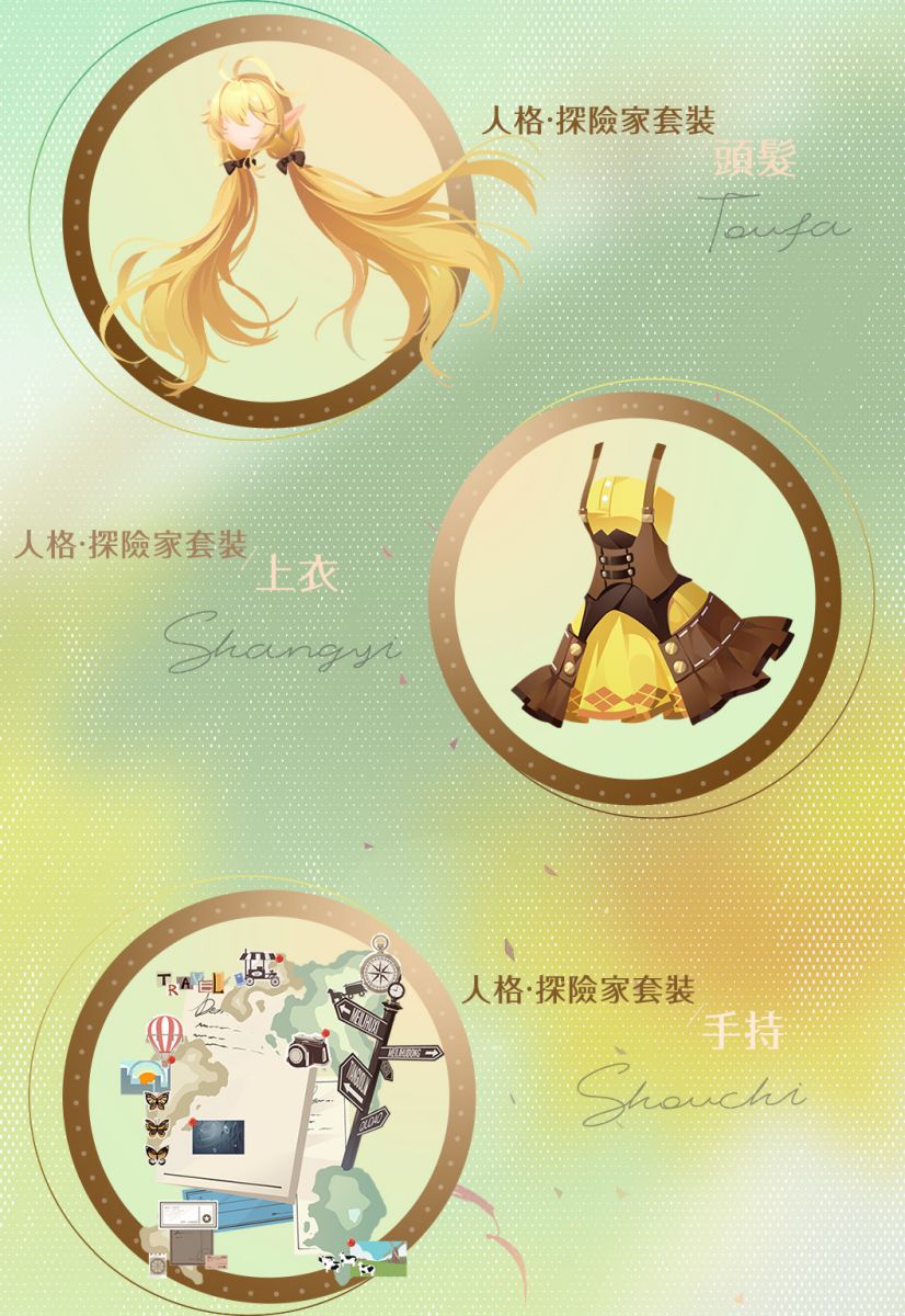 消耗水銀鏡,可抽取人格·冒險家套裝、手中世界背景秀裝飾;
