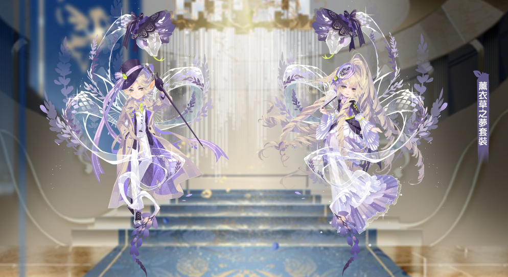 集齊【薰衣草之夢套裝】和【法蘭西約定頭髮】即可領取:法蘭西之夜全屏背景秀(30天)、素影舊夢背景秀裝飾、玄影舊夢背景秀裝飾。