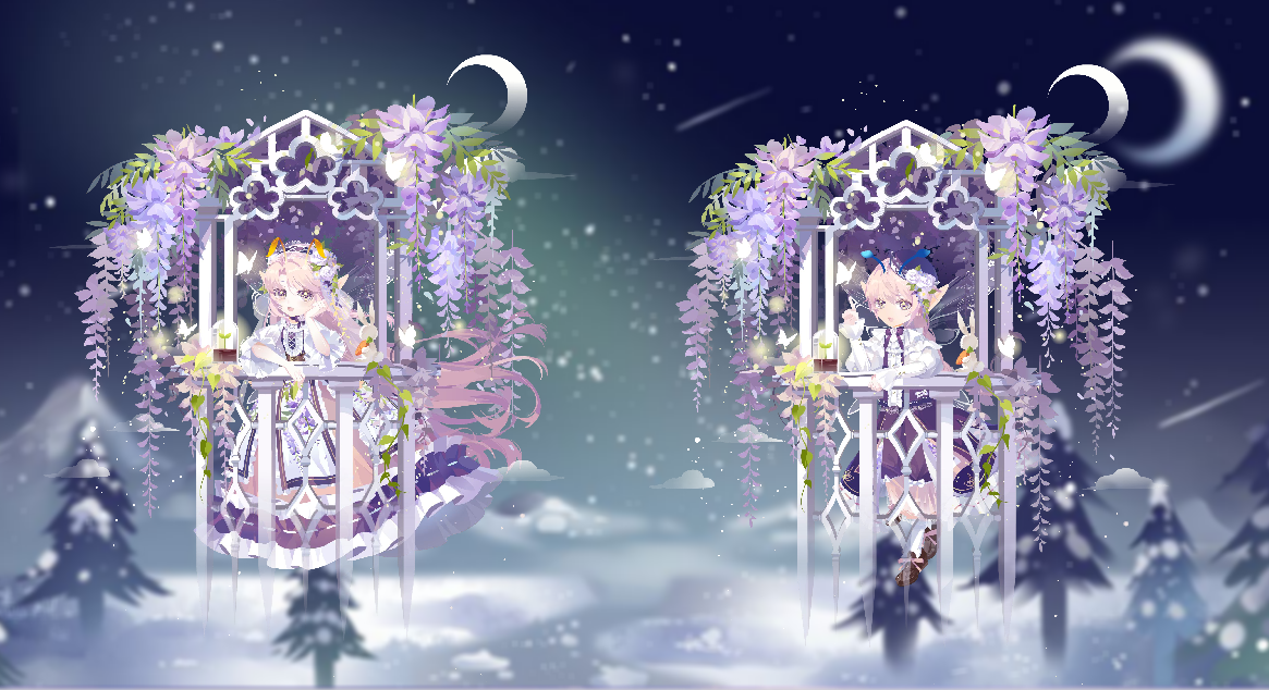 兌換滿60靈豆可獲得 琉璃花斛套裝 (雙性)