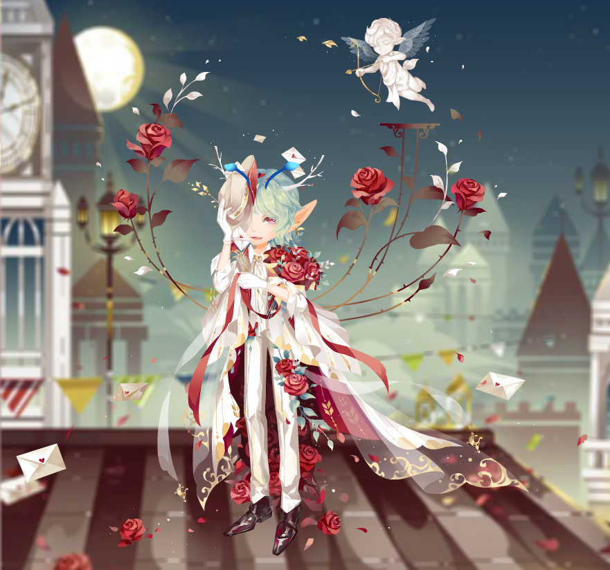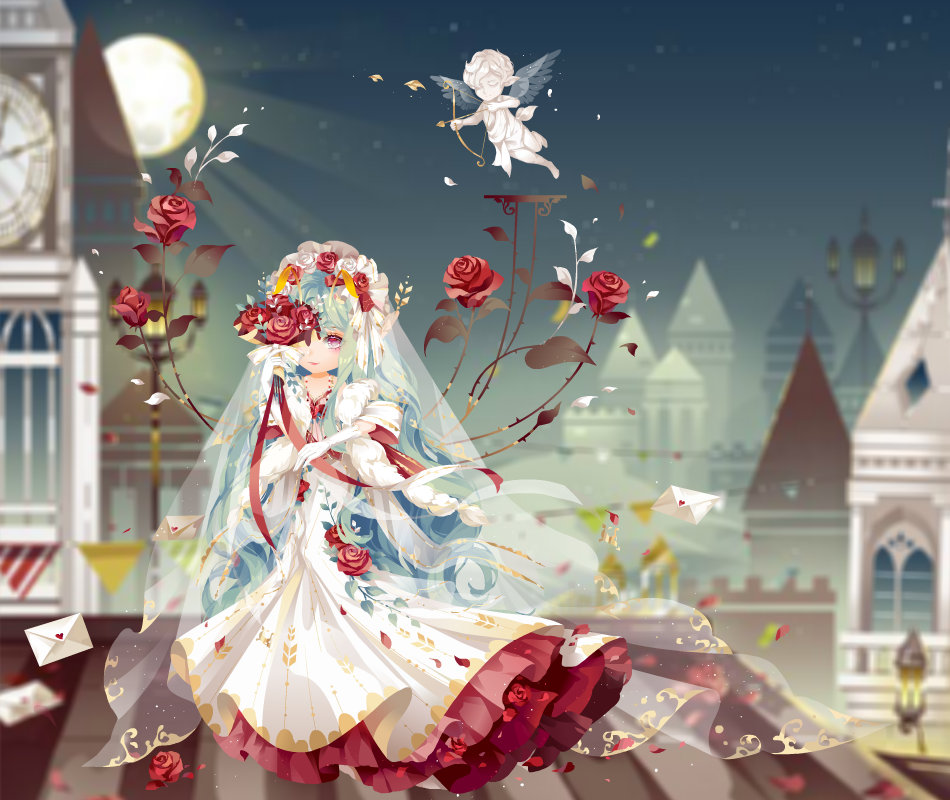 集齊【情人玫瑰套裝】和【逆轉城堡舞台】即可領取:浪漫玩具城全屏背景秀(30天)、寄情手持、寄情頭髮