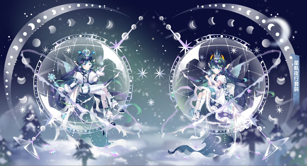擁有星軌夜行套裝,可獲得對應面妝及稱號:星軌夜行、雪夜流星全屏背景秀(30天)、雪夜松林背景秀裝飾、極光夜行頭髮、極光夜行手飾(擁有極光夜行頭髮及手飾,可獲得對應面妝)