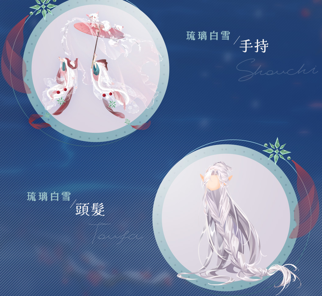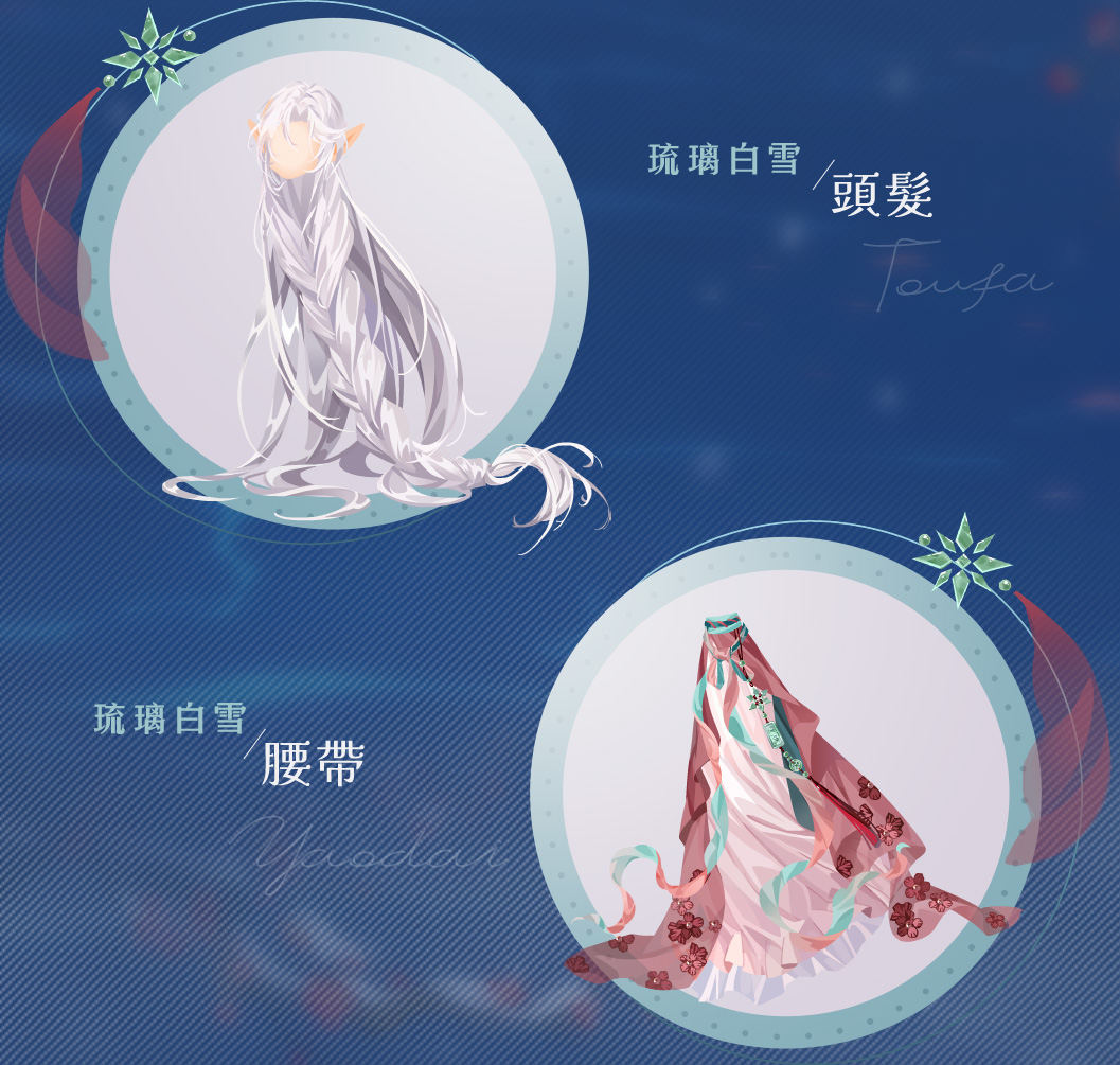 消耗水銀鏡,可抽取琉璃白雪套裝、琉璃髮夾(女)/琉璃面飾(男);