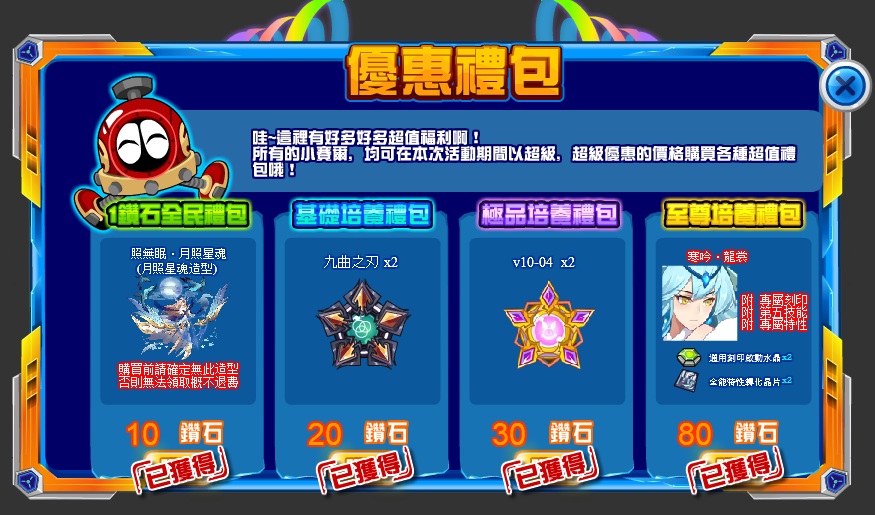 2.特惠禮包販售: